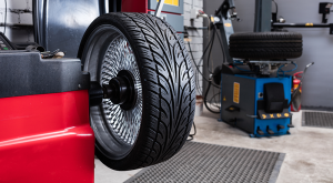 First, we take your wheels off and spin them on a machine to check for any uneven weight. If anything’s off, we add small weights to even things out.